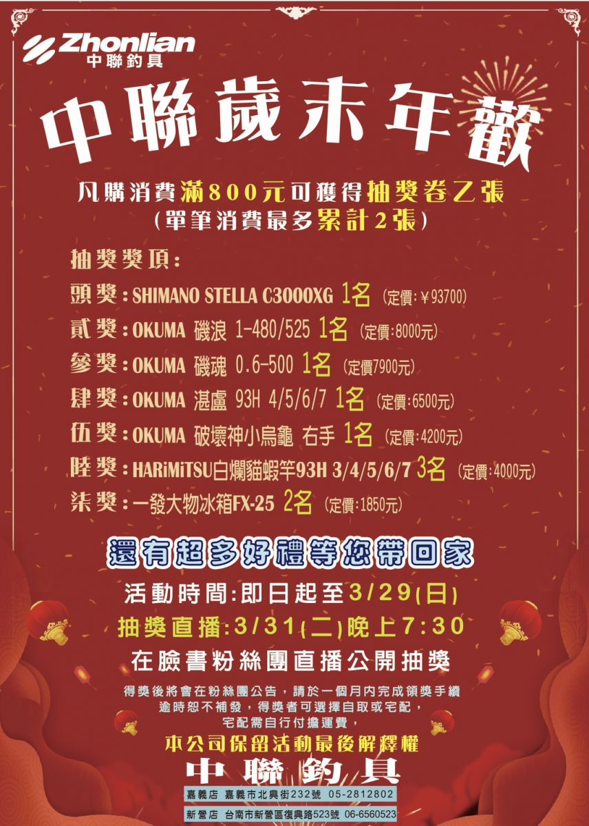 中聯釣具-釣具店 過年迎新春~恭喜你 中獎啦! #釣具推薦#釣魚設備#釣魚鉤#買蝦鉤#釣魚線#浮標