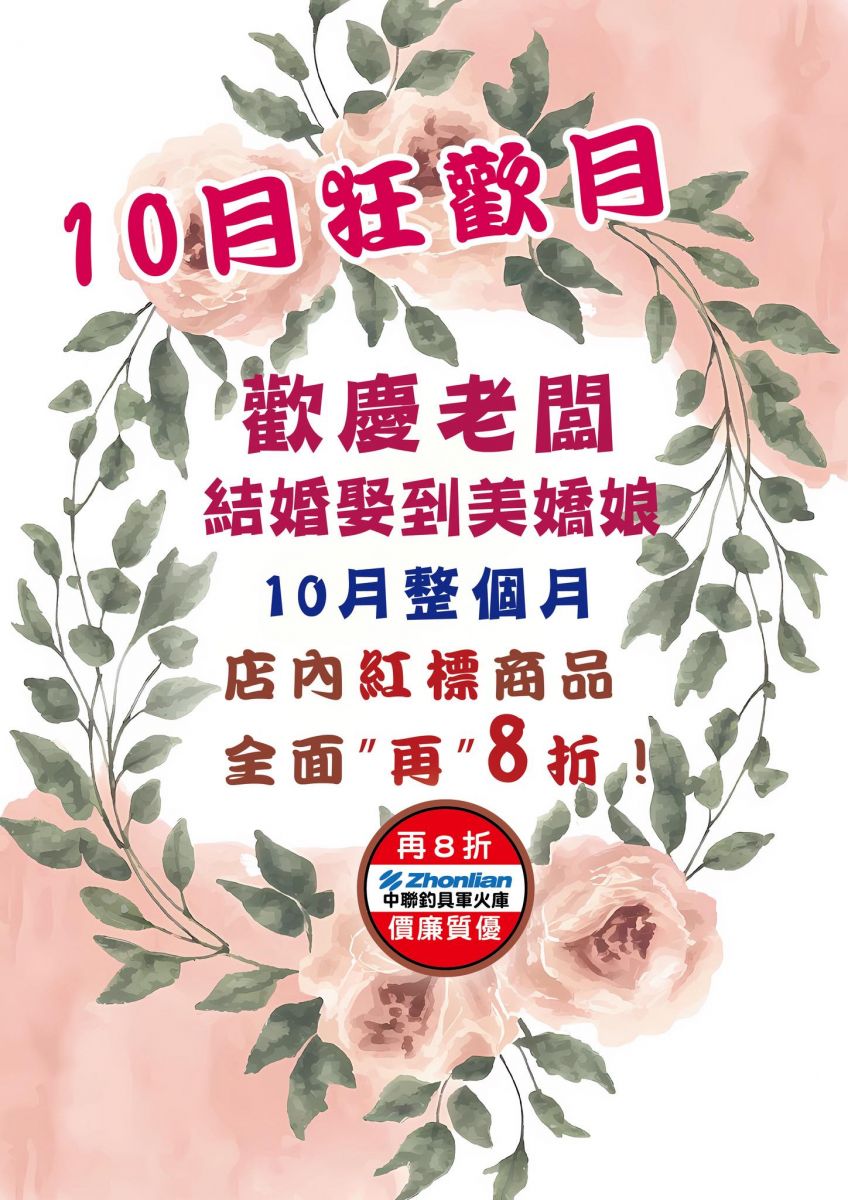 最新消息 | 10月狂歡月~慶祝老闆娶到美嬌娘~ 「店內紅標商品全面再8折」#釣具#釣具優惠#釣具店推薦#釣魚電動捲線器#推薦釣魚工具
